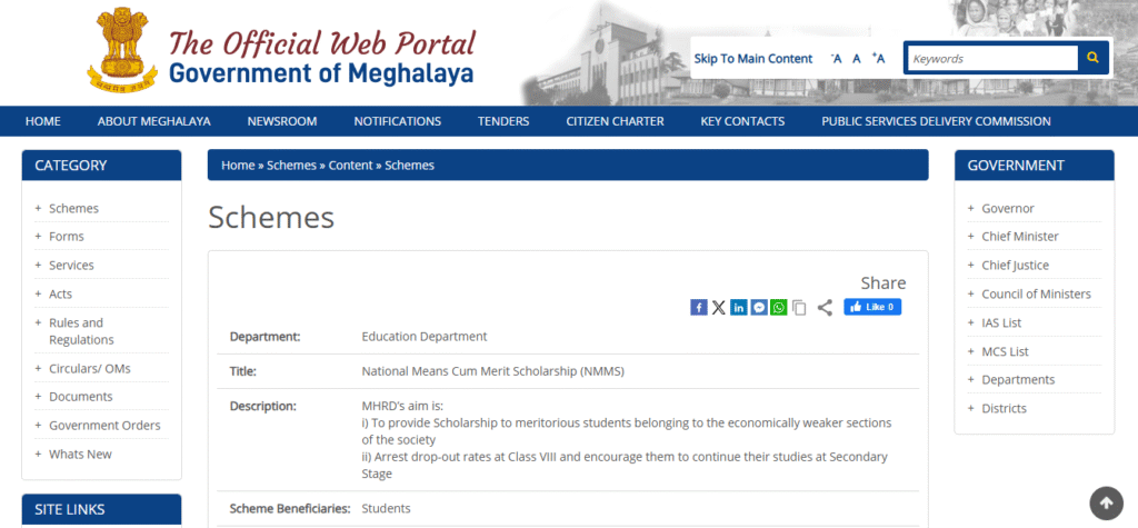 Scheme Name | CM Scholarship Scheme Meghalaya |