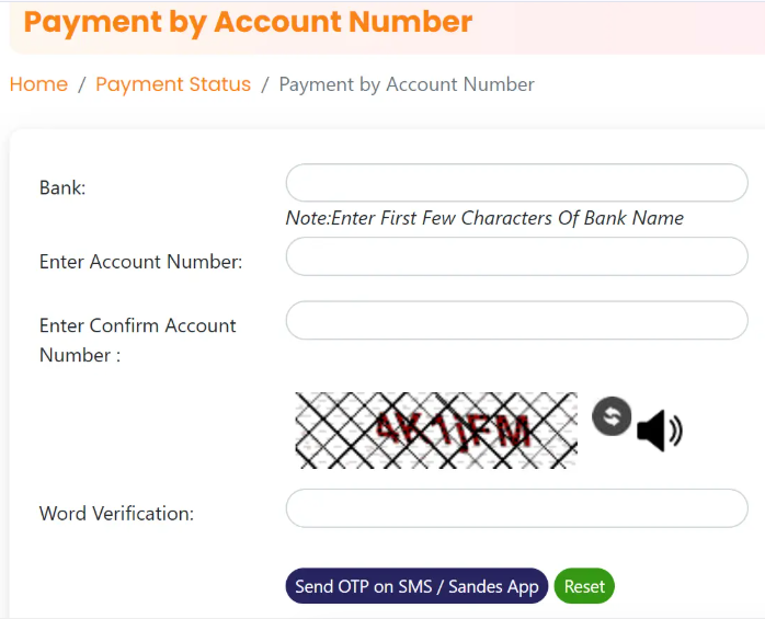 • आपको अब बैंक का नाम टाइप करना होगा यदि आपने महिला रोजगार योजना में आवेदन में दिया गया बैंक खाता नंबर और वर्ड सत्यापन कोड दर्ज करें।